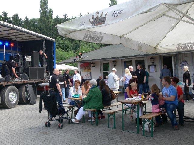 Bei einer so langen Tagesveranstaltung war es natürlich auch wichtig die Gäste reichlich zu beköstigen. Ein Metzgerteam verschaffte hier dem Hunger Abhilfe, verschiedenste Fleischvariationen konnten probiert werden. Ein Highlight war hier die ausgezeichnete Wildschweinbratwurst. Das üppige Kuchenangebot, gespendet von Familienangehörigen des Vorstands, wurde vor allem von den angehenden Senioren aber auch von Familien mit Kindern genutzt. Hervorzuheben sind auch die Grußworte von Adolf Siethoff dem 1. Vorsitzenden des IGBCE Bezirks Dortmund-Hagen der die gelungene Veranstaltung lobte und sich auch bei allen Gästen und Organisatoren bedankte. Zum Abend hin brachte die Coverband N´Joy die musikalische Untermalung. Mit schwungvollen Liedern kam zum Ende hin nochmals richtig Stimmung auf und zahlreiche Tanzbeine wurden geschwungen. Die hervorragende Auswahl der Songs und die exzellente Performance waren für alle ein Highlight und somit ein perfekter Ausklang unseres Sommerfestes.